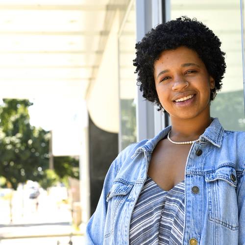 Dancers practice in the studio, students meet outside of the Bloomberg Student Center, a busy staircase is filled with people, students dine in the food hall, two individuals play a game of pool, a student organization has a discussion during a conference, a violinist performs, a theater group rehearses their lines.